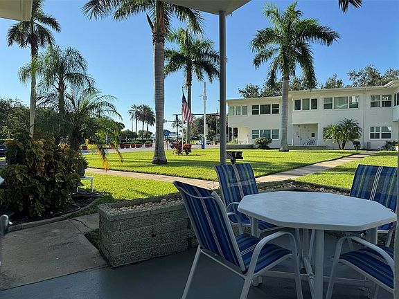 Downtown St. Petersburg living at its finest! This beautifully updated 1 bedroom, 1 bathroom ground floor co-op is located directly across the street from the Mahaffey Theater, Albert Whitted Airport, Salvador Dali Museum, Waterfront Park, The Tampa Bay Rowdies Soccer field, and the famous Saturday Morning Market. Nestled in a charming 55+ community, this residence offers timeless Old Florida appeal with modern upgrades. The home features impact-rated windows and doors, a private front porch, and comes fully furnished. Inside you will find an updated kitchen with stainless steel appliances, quartz countertops, and ample cabinetry, along with a spacious bedroom, a refreshed bath, and a comfortable living area that includes a pull-out sofa for guests. One covered parking space is included, and water, sewer, and trash are also provided, while electric and WiFi remain the responsibility of the resident. Community laundry facilities and a storage room are available on-site. This is a no pet, no smoking community. Perfect as a seasonal retreat or full-time residence, this home offers a maintenance-free lifestyle just steps from St. Pete's vibrant cultural, dining, shopping, and waterfront attractions.