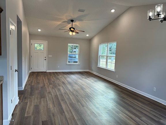 New construction on 1 acre in Nahunta! Come see this well appointed 1,232 SF home. Move in ready, architectural shingles, spray foam insulation in attic offers more comfort and saves money, double pane windows, low maintenance vinyl siding, luxury vinyl tile flooring, BEAUTIFUL maple cabinets, covered front porch, back patio, one acre of high and dry land. This property has a new well and septic, No HOA, County maintained Road, and high speed internet(fiber) available. Also Includes one year Builders Warranty.