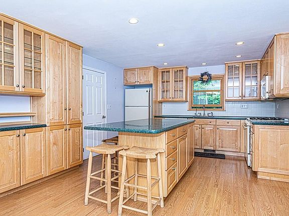 Welcome to 487 Boston Road, a spacious three bedroom home located on a private, wooded lot with a fenced in yard. Enter the front door and you are greeted with a large family room with a gas fireplace offering a great space and was just freshly painted. Looking for a large kitchen? Enjoy this front to back kitchen complete with a large center island, an abundance of cabinetry and a dining area. From here, walk out to an enclosed three season room for reading or relaxing. Completing the first floor is a half bath and laundry. The large front to back master bedroom with a walk in closet and its own three quarter bathroom rounds out the second floor with two more spacious bedrooms, and a fourth room for use as an office or sewing room. The finished basement has a large playroom and media room both with new carpet, as well as another additional finished room with space for exercise equipment or additional entertaining. Just add your own finishing touches & call this home!