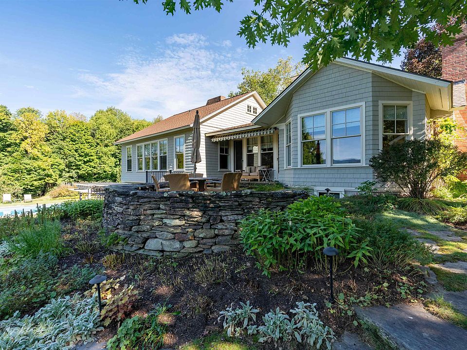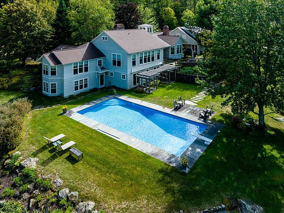 Welcome to Pratolino, a true Vermont gem, with hard-to-find acreage and breathtaking views of Mt. Mansfield. This commanding estate offers a pastoral setting with open meadows to complement the sweeping Stowe Mountain Resort views. The beauty of the natural setting extends into the home’s spacious and light-filled interiors, where custom cabinetry and bookshelves are fashioned from aged barn wood. The grand living room is anchored on one end with a brick hearth and on the other by large windows framing the view of the Green Mountains. The wide plank wood floors help to accent the custom beamed ceiling. You’ll feel the warmth of the home as you enter the kitchen featuring a handcrafted center island and sitting area with a fireplace. The primary suite is situated on the end of the main level with stunning mountain views and toward the pool and sloping meadow. Additionally, on this level, you’ll find a well-appointed guest room, a large home office, and a spacious mudroom. The walkout level has 3 additional bedrooms and a suite previously used as a recording studio for the band Deep Purple in 1985. A large family room rounds out this space as well as direct access to the pool. Above the garage, there’s a nicely done 2 bedroom apartment with views. The estate has 26 acres, a pool, pond, tennis court, storage barn, and an additional rental cabin tucked into the trees below the main house. Carry on the traditions of Stowe in this truly Vermont estate.