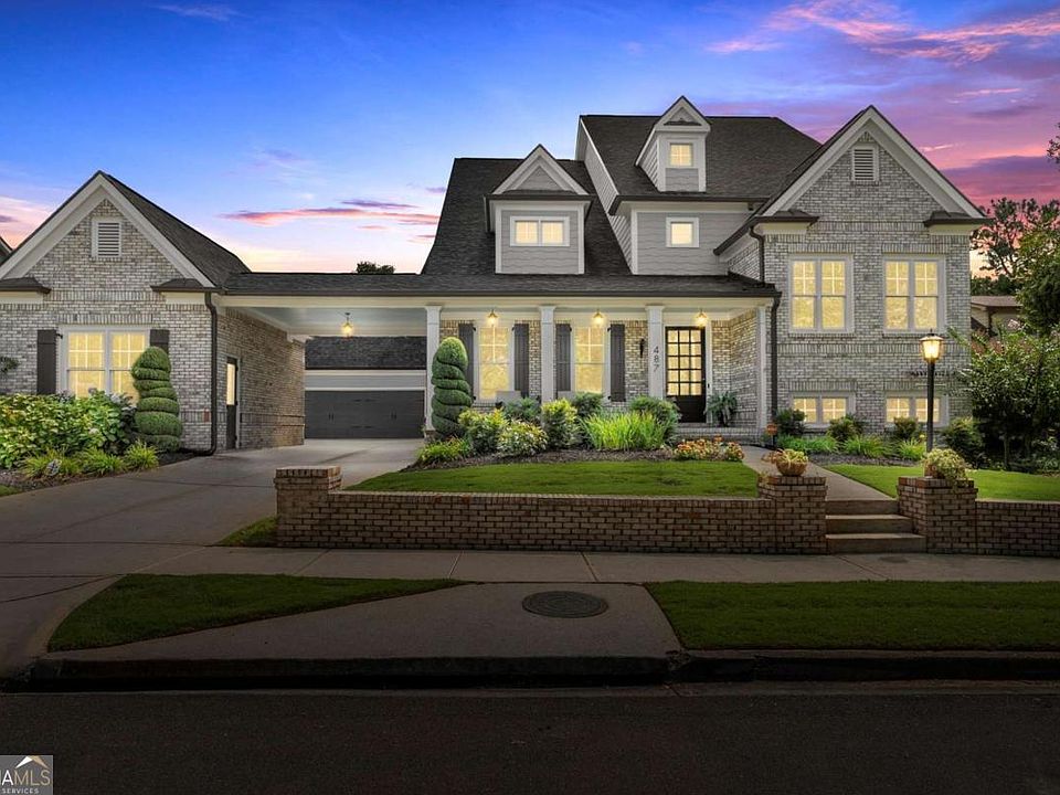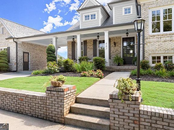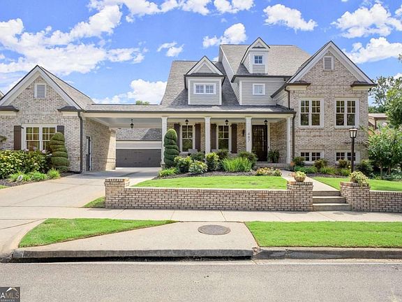 This custom Jeremy Rutenberg design in sought-after Carmichael Farms exudes timeless character and architectural charm-far exceeding your average floorplan. Perfectly situated on the community square, you'll love the picturesque setting with street lanterns, sidewalks, and a short stroll to resort-style amenities including pool, tennis courts, clubhouse with fitness center, and a park. A welcoming front porch opens to a bright foyer and beautiful staircase, flanked by an elegant dining room with a classic swinging door leading into the chef's kitchen-complete with custom cabinetry and vent hood, top-of-the-line stainless appliances, gas cooking, spacious island, breakfast bar, and sun-filled breakfast nook. The kitchen flows seamlessly into the fireside family room with custom built-in bookcases overlooking the expansive, level backyard and covered patio-perfect for grilling and entertaining. This unique floorplan spans three levels of living space plus an unfinished terrace level. Just a few steps up from the main level, discover the primary suite retreat encompassing an entire private floor. Designed as a true sanctuary, it features hardwoods, a spa-inspired bath with soaking tub + walk-in shower, expansive walk-in closet, and two versatile flex spaces-ideal for a sitting room, office, nursery or home fitness area. The upper level offers an amazing loft/flex space with built-in desk + computer nook, flanked by three generously sized ensuite bedrooms with spacious walk in closets. A completely separate guest suite with full bath (currently used as a private office) adds flexibility for multi-generational living, work-from-home, or extended guests. Additional highlights include gorgeous transoms and millwork throughout + fresh interior and exterior paint. Enjoy the outdoors in your professionally landscaped yard and take in the resort style amenities just a skip away! Discover Cherokee County's top-rated schools and enjoy being conveniently nestled between I-575 and GA-400 and close to shopping, dining, parks, and charming downtown destinations. Don't miss this opportunity!