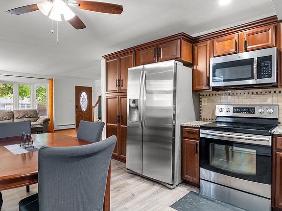 Step inside this charming and meticulously maintained Cape Cod, where pride of ownership shines throughout! Move-in ready and thoughtfully updated, this home features a remodeled kitchen (2018) with granite countertops, new stainless steel appliances, modern cabinetry, and plank flooring. The full bathroom was also upgraded in 2018 with a stylish new tub surround. Additional improvements include a newer roof and siding (2018), furnace and hot water pump (2018), water heater (2019), energy-efficient windows (2020), and all newer interior and exterior doors (2021). Step inside to a sunlit living room, accessible from both the welcoming front porch and side entry, and enjoy the benefits of an open floor plan. The spacious eat-in kitchen is ideal for everyday living and entertaining. The main level also includes the primary bedroom, a second bedroom, and a full bath. Upstairs, you'll find two generously sized bedrooms and a convenient half bath with the potential to add a shower and convert it to a full bath. The finished basement provides additional living space, perfect for a game room or family room, with direct walk-out access to the backyard through the storage and utility area.The established landscaping enhances the curb appeal and completes the picture. Conveniently located on the west end of town with easy access to Routes 100 & 422 and nearby shopping. Don’t miss your chance to own this lovingly cared-for home!