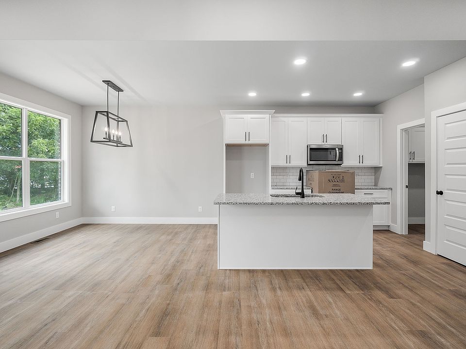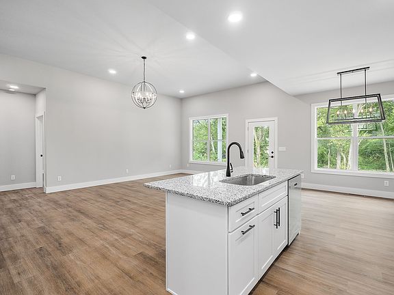 This spacious new construction home features 3 beds, 2 baths and a large living + kitchen along with a 2 car garage. The vaulted ceilings in the living room makes a bold statement! The kitchen has timeless white cabinets and matte black hardware finishes. You will find natural lighting throughout the entire home thanks to the large windows. This room is completed with a walk-in closet & bathroom with a double vanity, granite countertops and standing shower! The second bathroom is very spacious and showcases matte black finishes!