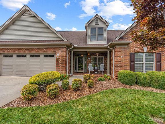 Highly desirable end-unit in Abingdon Glen offering three bedrooms, open floor plan, and a finished sunroom area. The covered front porch leads into a welcoming foyer opening onto a spacious great room with gas log fireplace and adjoining dining area and sunroom overlooking the backyard. The kitchen offers all appliances, solid surface countertops, and doors to the walk-up attic and double garage. On the opposite side of the house, you'll find three bedrooms, including a primary suite with private bath and walk-in closet. Outside, enjoy a sunny patio area with small garden space. Abingdon Glen is an active 55+ community in NE Hickory offering gated entrances, clubhouse, heated outdoor pool, sidewalks, fitness center, street lights, and very low maintenance living. HOA dues are $325/month and include access to clubhouse/pool/fitness center, internet/cable, pest control, and exterior building and yard maintenance. New HVAC July 2023.