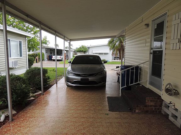 This home is in an age restricted community that is Pet friendly, you must be 55 or older. Bring your imagination to this two-bedroom two bath home at an amazing price. You will find the kitchen has a pantry, stainless steel sink, dishwasher, microwave, garbage disposal and a two door refrigerator. The dining area offers built-in service cabinet with plenty of storage and a beautiful fan. There's a screened in lanai in the front of the house. In the master bedroom you'll find a built-in dresser with two closets alongside. The bath has a full wall closet and a walk-in shower. The guest bedroom also has a full wall closet. The guest bath has a tub with shower doors. The driveway will hold three cars and at the end of the driveway is a shed with hookups for your washer and dryer. There is a rinse sink in there and plenty of room for storage. This home is being sold as is. There are some soft spots in the floor which are not uncommon in manufactured homes here in the Park.. The lot rent on this home is estimated to be $ 821.66 per month. However it covers everything except for your electricity, & cable tv/internet. Your water, sewer, trash pickup twice a week, recycling, all property taxes and lawn maintenance are included along with all these amenities. The park is pet friendly with fenced pet park. Offering 5 clubhouses, 5 heated pools, a riverfront pavilion with a fishing pier, marina, pool tables, libraries, bingo, dances, Cruise ship style shows, tennis courts, shuffleboard, new pickleball courts, horseshoe pits, woodworking shop, 2 fitness centers, over 75 different clubs, 24 hour patrol and free community bus that goes to shopping malls and food stores plus many other locations. The Cove offers so much more. If you get bored here, it's your fault. All listing information is deemed reliable but not guaranteed and should be independently verified through personal inspection by appropriate professionals. Integrity Mobile Home Sales cannot guarantee or warrant the accuracy of this information, measurements or condition of any property. Measurements are approximate. Lot rent is subject to change.