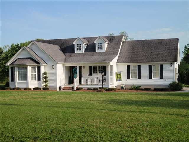 This is an immaculate home with beautiful features that rests on just under a half acre. There is a vaulted ceiling with gorgeous beams in the great room which has french doors leading to the Carolina Room, and a covered porch off of that! The kitchen and dining room are open to each other and the Owner's Suite is spacious with a vanity and huge walk-in closet. A lovely bay window is in the second bedroom which fronts the house adjacent to the covered front porch. Enjoy seasonal landscaping along the concrete drive and surrounding this beautiful ranch home. Call to see today!!