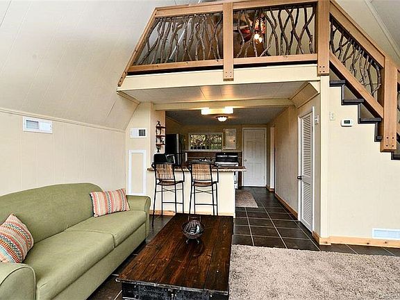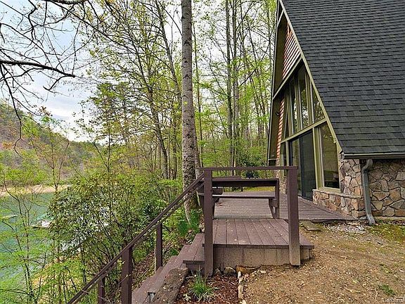 FONTANA LAKEFRONT TINY HOUSE!! This is a great weekend getaway home! Lake front!!! Small but very efficient. On the main level you have a large open living room with kitchen. Bath with laundry room. Upstairs you have a great size master bedroom loft. Stunning views of the lake! Small firepit area outside. Great entertaining deck outside. Steps that leads down to the water but no dock. This home has central heat and air along with gas log stove. Comes completely furnished! All buyer needs to do is apply for dock permit to enjoy days lounging by the water.