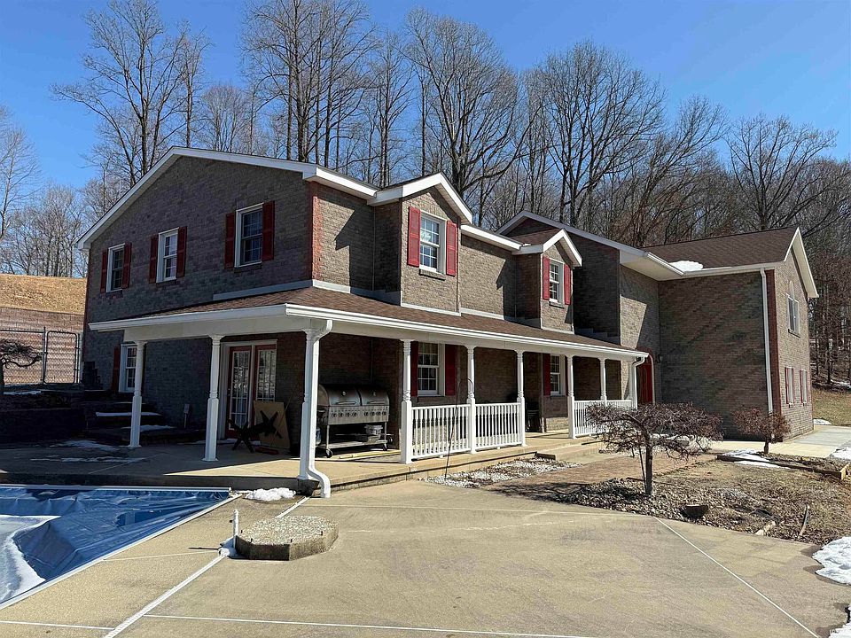 Stunning two-story brick home on 16 Acres . . . this is a must-see property! This spacious 3,624 sq. ft. home features 4 bedrooms and 3.5 bathrooms (including 2 newly remodeled bathrooms) a grand kitchen with granite countertops and high end appliances, and very functional cabinetry with a multitude of features. The 33' x 23' family room has cathedral ceilings, and it offers plenty of space for gatherings or relaxation. The luxurious 36' x 15' master bedroom also has cathedral ceilings, and it is a true retreat. Additional highlights include a dining room, living room, tankless water heater and a furnace with gas backup. The 34' x 24' attached garage provides easy parking and plentiful storage. The detached garage is 60' x 40', is heated and cooled, has its own washer/dryer, full bath, three 220's, new hot water heater, and a versatile upstairs space that would be ideal for sleepovers, theater room, or even storage. You will also find the superb centrally located in-ground pool that is complete with an automatic pool vacuum, new filter and cover (2024), pool house, and pavilion. The pool can be heated by the outdoor boiler for extended seasonal use. You will enjoy the 16 acres of beautiful land with its trails, abundant wildlife, and a stocked pond that is aerated by the windmill. There is even a fire pit atop the hill, perfect for campouts under the stars. This incredible property offers luxury, space, and nature all in one! Schedule a showing today.