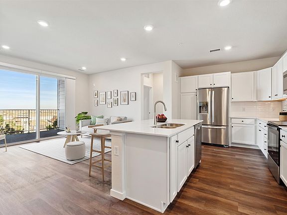 The versatile Residence 2B at Grand Vue was designed with your comfort in mind. A beautiful open-concept layout greets you upon entering the foyer, anchored by a well-appointed kitchen that overlooks a charming dining area and a great room-boasting direct access to a relaxing covered deck. You'll also find a generous laundry room off the foyer. Additional highlights include a sizable secondary bedroom with access to a full bathroom, plus a stunning primary suite-featuring a roomy walk-in closet and a deluxe private bath with dual sinks and a benched shower. Prices, plans, and terms are effective on the date of publication and subject to change without notice. Square footage/dimensions shown is only an estimate and actual square footage/dimensions will differ. Buyer should rely on his or her own evaluation of usable area. Depictions of homes or other features are artist conceptions. Hardscape, landscape, and other items shown may be decorator suggestions that are not included in the purchase price and availability may vary. No view is promised. Views may also be altered by subsequent development, construction, and landscaping growth. ©2024 Century Communities, Inc
