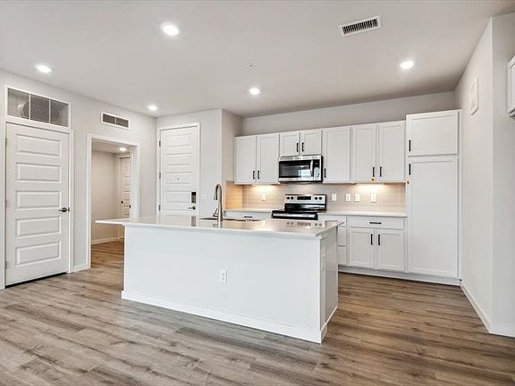 A smartly designed single-story floor plan, Residence 3A at Grand Vue offers an abundance of flexible living space. Upon entering the foyer, you'll be greeted with a dazzling open-concept layout-anchored by a well-appointed kitchen with plenty of storage space. A generous laundry room is also located off the foyer. Beyond the kitchen, an expansive great room and dining area provide direct access to a sizeable outdoor deck that's perfect for entertaining. For private living spaces, you'll appreciate a spacious secondary bedroom and a versatile den with access to full hall bathroom. And on the opposite side of the home, a deluxe primary suite boasts a large walk-in closet and a lovely private bath with dual vanities and a benched shower. Options may include: Third bedroom in lieu of den Prices, plans, and terms are effective on the date of publication and subject to change without notice. Square footage/dimensions shown is only an estimate and actual square footage/dimensions will differ. Buyer should rely on his or her own evaluation of usable area. Depictions of homes or other features are artist conceptions. Hardscape, landscape, and other items shown may be decorator suggestions that are not included in the purchase price and availability may vary. No view is promised. Views may also be altered by subsequent development, construction, and landscaping growth. ©2024 Century Communities, Inc