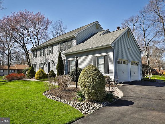 All offers to be submitted by Sunday with presentation on Monday. Welcome home to this classic, spacious 4 bedroom, 2.5 bath, center Hall Colonial. Step into the wide open foyer. Stunning, new hardwood floors through out this home. The formal living room with crown molding opens to the oversized dining room plenty of natural light filtering through . The kitchen with electric cook, sufficient cabinet space and pantry, center island, corian counter tops, tile backsplash with an attached breakfast room overlooking the rear yard. Opens to the family room which boasts a wood burning brick fireplace, powder room, and double doors to exit to rear updated trek deck. Enjoy your own piece of serenity. An added bonus room located off the entry hall, Currently used as a sewing room, can be office, playroom library the choices are endless. Access to the attached 2 car garages complete this first level. proceed to the lower level which boasts a large finished 2nd family space, separate office room, separate utility room,exercise room, along with another finished room to be used as your needs require. Plenty of storage through out, The 2nd floor with a large Main suite encompassing two walk in closets, a newly finished gorgeous ensuite. The hardwood floors are carried through this entire level. There are 3 additional well appointed bedrooms. center hall updated bath along with linen closet. This home has been recently professionally painted through out in a soft neutral color. Fantastic location on a corner lot where you will feel home immediately. Conveniently located to shopping , parks, schools and easy commute to Princeton, Phila, and New York . This home is waiting for you