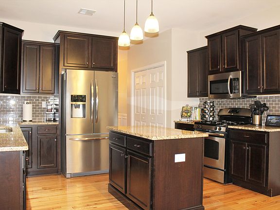 Elegant 4 bedroom, 2.5 bath 2 story in golf community! Large kitchen w/ peninsula & island, granite counters, subway tile & light filled breakfast area. Recently painted in calm, neutral colors, newer hardwood & carpet. 1st floor laundry. Large master bedroom & bath w/ soaking tub & sep shower. Walk out basement. 2 car garage w/ storage area, level driveway.