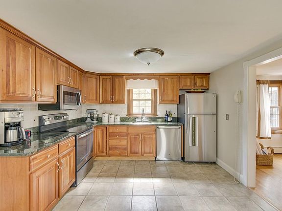 Pride of ownership throughout! This mint garrison colonial set back on a tree lined retreat lot. Large eat in kitchen, cherry cabinets,stainless appliances & granite tops, opens to fire placed family room with custom built-ins, slider to deck, formal living room & dining room with gleaming hardwoods, enclosed all season porch w/ tile flooring and windows galore leads to private deck. MBR with large walk in closet ( was 4th BR), large MBA, all BR's offer hardwoods and ample closet space. Finished lower level w/slider walk out, recess lighting, built in seating, 1/2 BA, and exercise room. Impeccably maintained inside and out! Rear yard offers multiple decks, patio and privacy, Over sized two car garage with professional storage system, generator hookup, attached storage shed on rear of garage. Conveniently located minutes to Rt 3, schools, shopping.