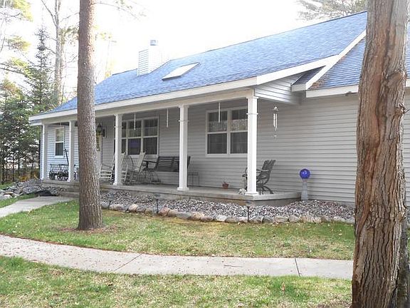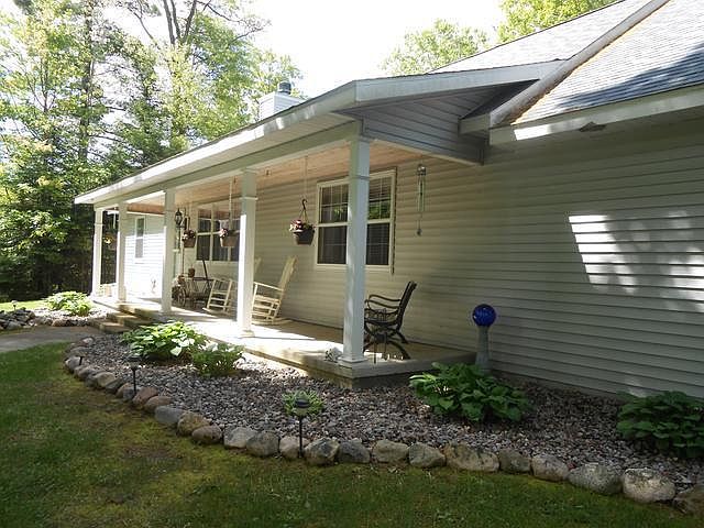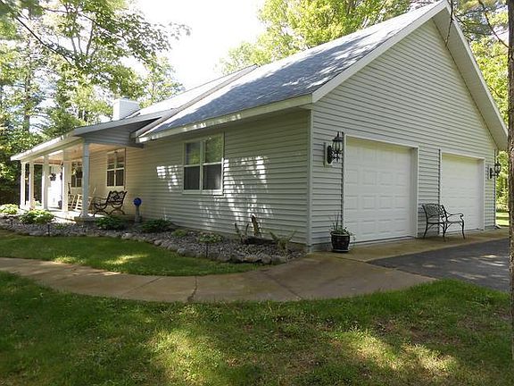 META LAKE ROAD RANCH HOME - This impeccably maintained ranch sits on a nicely wooded 1.51 acres conveniently located 3 miles south of Eagle River with the ATV/snowmobile trail at your doorstep. Drive up your blacktopped driveway to an attached, fully insulated two car garage that opens into your in-floor heated entryway/laundry room with plenty of cabinets & closets. Beautiful hardwood floors throughout the kitchen, dining & living areas along with in-floor heating in both bathrooms. Skylights in the kitchen/ living areas bring in loads of light. Plenty of cabinets & pantry along with a breakfast bar in the kitchen/dining area that leads to your patio and spacious backyard complete with fenced in garden. A split floor plan gives you privacy with two bedrooms & full bath. Wood burning fireplace in the winter, central air in the summer. Full unfinished basement plumbed for third bath with high ceilings gives potential added square footage.