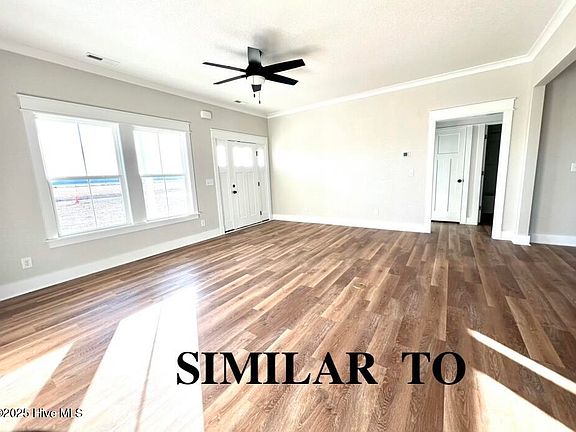 Country living just got better! Imagine coming home everyday to this Newly built 4 bedroom, 2.5 bath home nestled on 5-expansive acres in peaceful Camden County. Inside you are welcomed with an open floor plan thoughtfully designed with custom trim and added accents to accommodate the entire family. The sun-filled kitchen boasts a generous island, Quartz countertops, black appliances, large pantry and LOTS of storage. Just off the kitchen is an enclosed screened in porch, perfect for relaxing or entertaining family and friends. Around from the kitchenis the Primary bedroom offering a true sanctuary. Featuring a functional layout with ample space, decorative tray ceiling, an generous spacious walk-in closet with custom wood shelving and shoe racks. The primary bathroom features a beautiful tile shower with rain head, soaker tub, double vanities with ample lighting and plenty of space to share, build-in storage shelves in addition to ample cabinets. Large spacious laundry room just off of the garage gives an excellent location for easy access and convenience. Upstairs to see the large bedroom featuring it's private bath, temperature control thermostat and large closet. With limited neighbors and NO HOA you can have the freedom to allow your dreams to take off. The backyard has plenty of space for a pool, workshop etc. This plan truly offers something for the entire family! Location is convenient to Elizabeth City, Coast Guard Base, Virginia and the OBX. Call today for more details and ask about the closing cost assistance that the seller is offering.