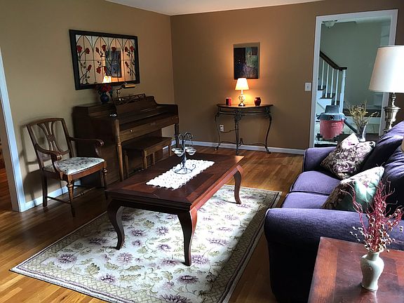 This lovely 2- story Colonial in a quiet neighborhood setting which overlooks a wooded area in the front and a vast private backyard is move-in ready! The front foyer includes Italian tile flooring, a large closet and half bath leading into the open architecture of a remodeled kitchen. It includes granite counter-tops , pantry closet, laundry area, stainless steel appliances as well as a separate dining area with a bay window overlooking the expansive backyard as well as access to the basement. Renovated basement has wall-to-wall carpeting, a multi purpose groom with a closet, a separate work / hobby area and separate utility room with access to the backyard. The kitchen is adjacent to the sunken family room that features a fireplace and French doors to the outside patio and access to the garage, which has two separate Overhead Doors one pedestrian door leading to the backyard, access to the storage area attic above the garage with pull-down stairs. Garage is completely sheet-rocked and painted. Additionally, the first floor includes oak hardwood floors throughout, a sunny formal living room with a large picture window and formal dining room. The second floor includes four bedrooms, a full bath, and pull down stairs to the attic. The spacious Master Bedroom Suite features a walk-in-closet and fully renovated bathroom, as well as French doors that lead to a backyard patio. Schools: blue-ribbon elementary & top rated #7 high school in CT.