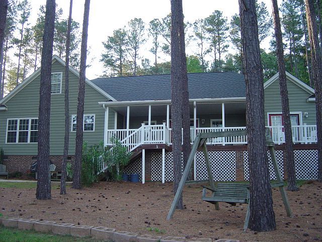 Beautiful home on Pea Hill Creek with a lot that is flat toward the water,that is well lanscaped with many extras.Enter this home through a hardwood floored foyer exposing a cheerful, colorful Great room and cozy fireplace and french doors that give a beautiful view of the sparkling waters of Lake Gaston. A Wonderfull kitchen with recessed lighting and gorgeous cherry cabinents,hardwood flooring, Lazy Susans and centered with a Work Island/Bar and also includes a kitchen table area for family enjoyment. Three bedrooms, a 11/2 car garage and hudge upstairs area that can be finished, completes the inside of this home. A large cemented circular driveway and covered proch toward the lake.