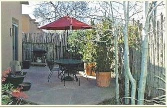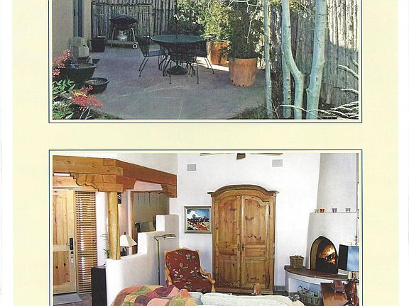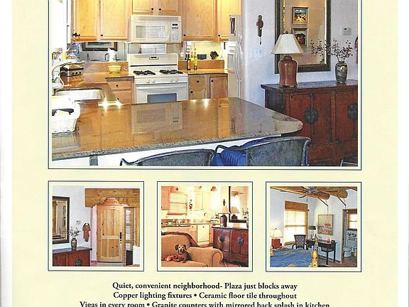 Ideal downtown condo ready for occupancy. Two bedrooms and two baths with tile floors throughout. Good closet space. This immaculate property won't last long. Quiet, convenient neighborhood the Plaza is just a few blocks away. Vigas throughout, kiva fireplace in the living room which is open to the dining area and kitchen. Radiant floor heat and evaporative cooling. All appliances including a stack washer/dryer. Easy to maintain professionally landscaped patio with drip irrigation system off the dining area. Carport with adjacent parking. Owner will consider well-behaved dog. Plus utilities