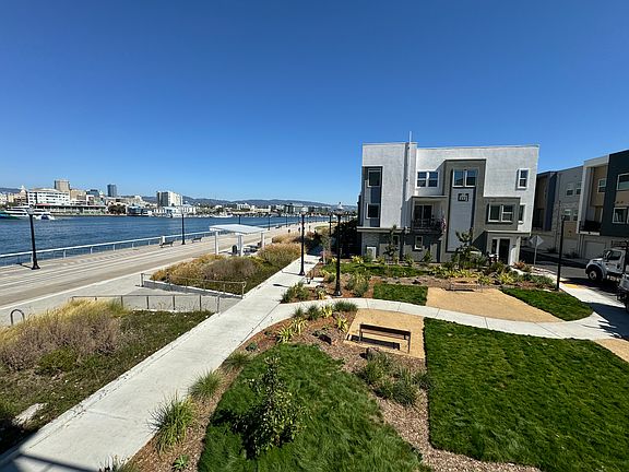 Welcome home to this gorgeous, brand new 2BD/1.5BA townhouse along the Alameda/Oakland waterfront. This is a desirable end unit with wonderful views of the estuary, Oakland waterfront and skyline, and the park right outside your doorstep. You're conveniently located just behind Alameda Landing shopping with easy access to the freeway and transportation. The townhouse has a nice open living room into the kitchen with island for easy entertaining. Large windows surround every side with magnificent views, and access to the lovely patio/balcony. Upstairs you'll find two bedrooms with large closets, a full bath with tub, and in unit stacked washer and dryer. Plus access from one bedroom to another lovely balcony. The main level of the townhouse has the entry from the large one car garage, hall closet, and additional half bath. Unfortunately the property does not allow pets. Available now! Professionally managed by Gallagher and Lindsey. Good credit and combined income of 3x rent required to qualify. Owner pays 30% leasing fee $40 application fee No pets please