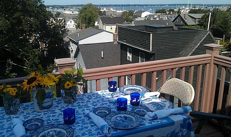 Enjoy incredible, unobstructed harbor views from an oversized deck and enjoy epic sunsets and a view of the Newport Bridge + gardens of the elegant Elm's mansion from this beautifully renovated tri-level townhouse in downtown Newport.