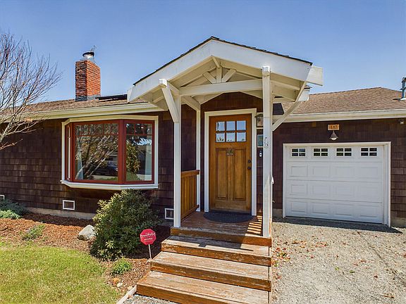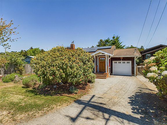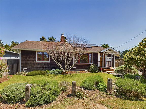 Coastal dream home artfully designed to perfection! This 3 bed 2 bath approx 1558 s/f sanctuary offers impeccable features around every corner w/custom river rock & tile showers, fossil limestone kitchen counters, redwood trim, elegant fir doors & flooring. Energy efficient w/solar panels & Tesla battery, ensuring your home is environmentally friendly & keeps utility costs to a minimum. Gather around the impressive rock fireplace w/redwood burl mantle on chilly evenings or step out to your expansive garden, nearly a quarter-acre in size, which promises serene outdoor living & endless potential for a green thumb's paradise. Quality construction is evident in every detail, making it the epitome of craftsmanship. Seize the opportunity to own a slice of bliss where luxury meets sustainability