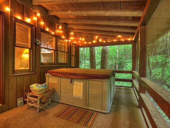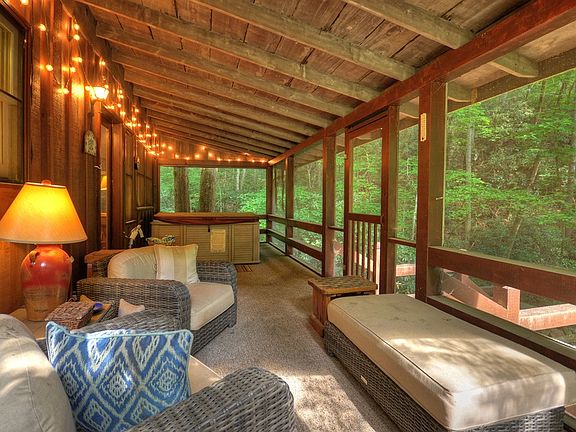 Listen to the creek - One Level ! 2 Bed/1 Bath secluded get a way cabin located within My Mountain subdivision, a highly sought after community offering paved roads and within minutes to downtown Blue Ridge. Great back screened in porch with hot tub and pretty view of property.