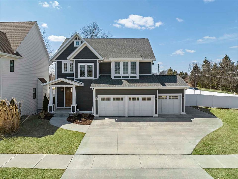 Award-winning, Colonial-style home in this large, versatile floor plan has 6 bedrooms including two primary suites, 4.5 baths. Feat. wainscoting floor-to-ceiling in the living room, 10' ceilings, abundant carpentry and wall-detailing, two gas fireplaces, hardwood flooring, slow-close cabinetry, quartz counters, stainless appl., pantry, large eat-in island, mudroom, tiled baths, main-level primary, tiled zero-entry primary shower, soaking tub, double vanity, primary WIC, built-in desk, office, loggia, fenced yard. A second primary suite is on the upper level as well as a study, two addit. large bedrooms with a Jack-n-Jill bath and each has a WIC. The lower level includes large family room/rec. area, wet bar, 2 addit. bedrooms, and a bath.