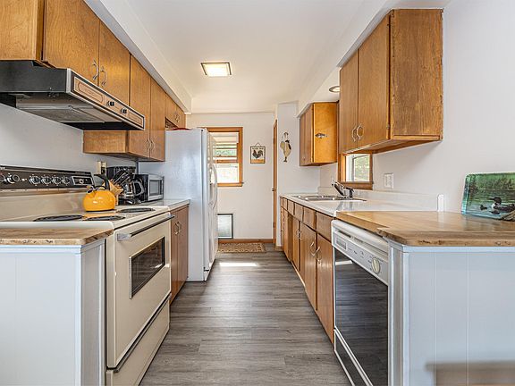This seasonal property on Girl Lake offers a perfect blend of recreation and convenience, being just steps away from the 100’ of shoreline and a short distance from town. The LR has a wood-burning fireplace for warm evenings during colder months. Large windows and a sliding door encompass the lakeside view from the DR and LR. The knotty pine porch is a delightful space to relax, unwind, and create lasting memories. The main level owner’s suite and laundry area, make one level living a breeze. Upstairs you’ll find two generously sized bedrooms, each able to accommodate multiple beds. The additional bathroom on this level adds to the convenience and practicality of this home. One of the most appealing aspects is the flat landscape, providing easy access to the lake without any elevation concerns. The 2-stall garage adds plenty of extra space. Embrace the joys of lakeside living by spending your days swimming, boating, or simply enjoying the sounds of water lapping against the shore.