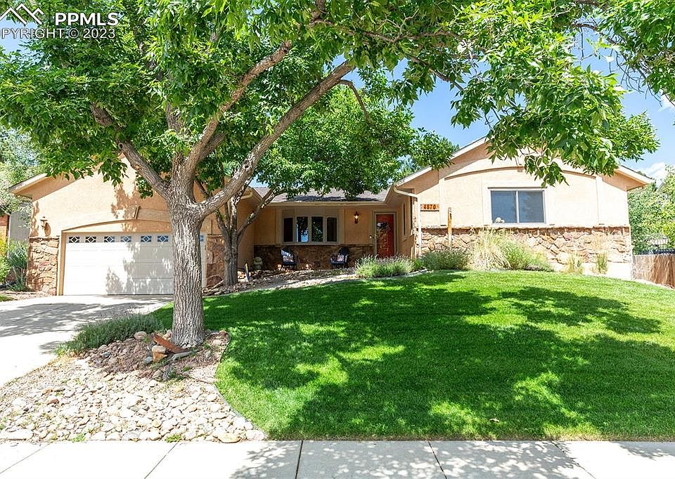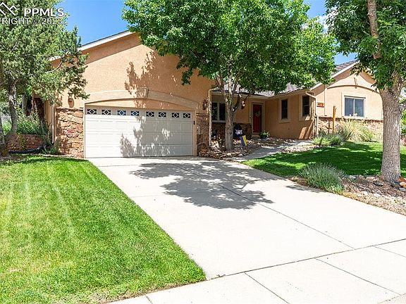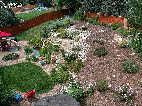 Beautiful 4 bed, 3 bath Mountain Shadows rancher on a quiet cul de sac offers main level living at its best with THREE MAIN FLOOR BEDROOMS with a bonus 4th bedroom on lower level for guests. Extensive landscaping includes mature shade trees and an absolutely spectacular backyard flower garden accented by a stunning waterfall feature and pond. The 25'x16' stamped concrete rear patio offers a private sanctuary to enjoy the captivating waterfall and beautiful flower beds over morning coffee or an evening glass of wine. Prepare to be impressed! In addition to 3 main level bedrooms, including the primary owner's suite with a walk-in closet and adjoining en suite bath with a stand alone shower and soaking tub, the main floor boasts a living room, dining room, large breakfast area off the kitchen and a family room with a gas fireplace that opens to the rear patio. Beautiful hardwood floors grace much of the main level, including the living and dining rooms, kitchen, breakfast area and hallways. Kitchen has newer stainless steel appliances and granite counters. A second full bath near the other 2 bedrooms and laundry space off garage complete the 1,757 sq ft of main level living. The lower level offers a large recreational area with ample theater room space to entertain family & friends with movies and game nights. It also includes the 4th bedroom and a 3/4 bath. Home offers an abundance of closet space. Save on utilities with the newly installed (late August 2023) high efficiency Trane AC & furnace! Home also boasts a newer (2019) Class 4 hail resistant roof with beautiful, upgraded architectural shingles. Location is within walking distance of award-winning Chipeta Elementary School and Mountain Shadows Park. Close proximity to I-25, Ute Valley Park, Garden of the Gods and Blodgett Peak Open Space make this a dream home for outdoor enthusiasts seeking main level living in the highly desirable Mountain Shadows community. Radon mitigation system added 9.26.23.