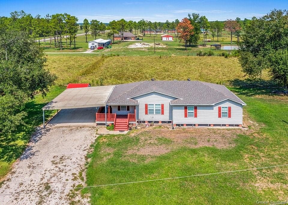 Discover the charm of this well-maintained country home nestled on approximately 4 acres acres within the Gillis Elementary school district. Built in 2012 with a new roof installed in 2021, this 3-bedroom, 2-bathroom home offers a warm and inviting ambiance. Step onto the cozy front and back porches, or park under the 2-car carport with a convenient handicap ramp. Inside, the home boasts a spacious living room with ample natural light and French doors leading to the back porch. The kitchen features an attached dining space, abundant cabinetry, a built-in desk, a gas stove, a fridge, and a dishwasher. The master suite is a retreat in itself, complete with an attached bathroom featuring two sinks, a soaking tub, a shower, and dual closets. A central laundry room adds practical convenience, while the spare bedrooms offer comfort with carpeting and generous closet space. The property is being surveyed and is cross fenced with 2 pastures. Don't miss the opportunity to own this tranquil slice of countryside living.
