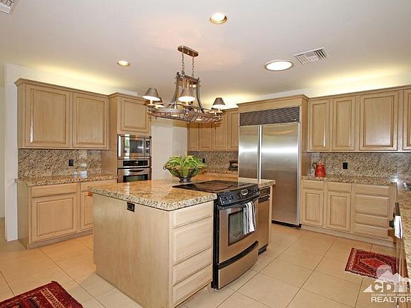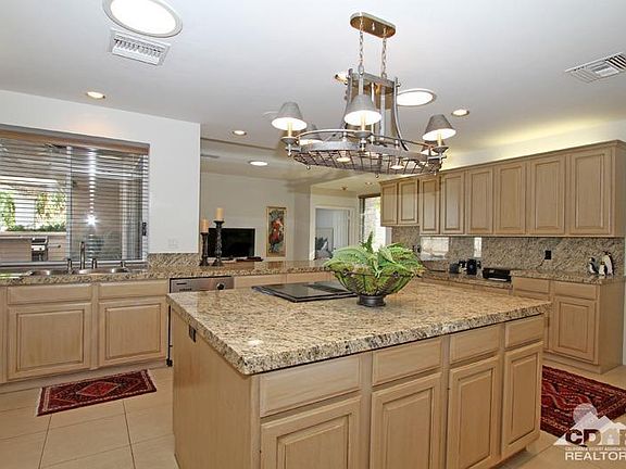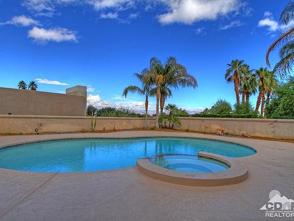 The Summit is a desirable South Palm Desert neighborhood surrounded by private Country Club communities. This lovely home backs to the privacy of Ironwood Country Club and captures mountain views to East and West. Well-maintained and upgraded with 3 bedrooms, 3+ baths, oversize double garage and wonderful outdoor areas. Three suites are nicely separated and have private baths. The master bath is light & bright with heated tile flooring, large walk-in closet, built-in drawers and dramatic walk-in shower. Step down Great Room off the entry with fireplace and sliding doors open to pool patio. Open spacious kitchen with island has slab granite counters & backsplash, Jennaire appliances, Subzero fridge and double ovens. Kitchen has built-in desk and generous counter space with eating area and seating at counter. Pool and patio surfaces are newly resurfaced and the yard has updated landscaping Lovely home is a great location.