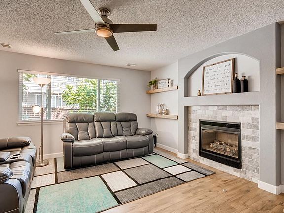 Your new Eastridge home awaits! Vaulted ceilings cascade into the dining area w/ bay window. Kitchen features quartz counter tops, SS appliances, soft-close cabinets, island & subway tile back-splash. Beautiful laminate hardwoods flow seamlessly throughout the main level w/ designer paint, fireplace accent shelves, custom beetle kill railings w/ stainless spindles. Private master w/ en suite bath. Two bedrooms w/ shared full bath. Finished basement provides a secondary family/rec room space w/ bar or a large bedroom & newly remodeled 3/4 bath. Large laundry room w/ built-in cabinets. Newer water heater, roof & exterior paint. Enjoy entertaining on your cozy patio. Close to Park Meadows shopping & restaurants, rec centers, parks & trails within walking distance.