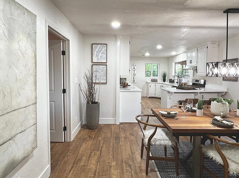 This Beautifully Remodeled 4 Bedroom, 2 bath home has potential for rental income! Downstairs apartment has 2 potential bedrooms, full bathroom and kitchen/living/dining area - and a Separate entrance with it's own carport parking space. Main level has a farmhouse style remodeled kitchen with new appliances, quartz countertops, and quartz sink. A sun room with mountain views wraps around back of home. Newly remodeled master and half bath. New luxury vinyl hardwood plank flooring throughout house! Brand New Roof and Gutters so you can be ready for winter. Fresh paint inside and out, 2 new water heaters, and HVAC Unit. Updated Plumbing and Electrical. Don't miss this rustic beauty - ready for you to move in and call home!