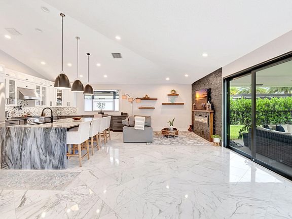 This captivating house offers an exceptional living experience, seamlessly blending sophistication and modern comforts. Nestled within the prestigious Bocaire Country Club community, this stunning residence boasts four bedrooms and four bathrooms, providing ample space and remarkable features.As you enter inside, you'll be greeted by an open-concept layout that effortlessly connects the kitchen, family room, dining room, and living room. The kitchen is a true highlight, featuring a stunning quartzite countertop imported from Italy and all-new state-of-the-art appliances. The convenient kitchen island further enhances the functionality and flow of this inviting space.The home's interior has been meticulously maintained, with recently refinished flooring that creates a cohesive and refreshed ambiance throughout. The newly painted interiors and the brand-new metal roof, along with the newly installed impact windows, contribute to the property's visual appeal and energy efficiency.