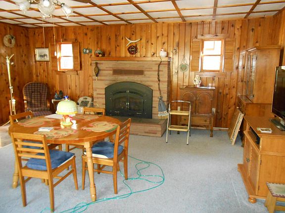 Unique house. Built into a hillside for cool summers and insulated winters. Large family room with fireplace. Nice covered porch. Updated kitchen. Master bedroom upstairs. Huge lower level with a walk out. Fireplace on upper covered patio. Family room fireplace is a Heat-a-lator. Garage has been converted to a workshop. New roof in 2007. Septic system was redone with a new drainage field added in 2007. Propane installation has County approval. New electrical panel-permitted and approved.Water is a community well with individual meters.