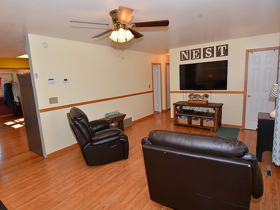 Beautiful Ranch style home loaded with extras. New roof, gutters and exterior paint. Kitchen is updated with nice counters, sink, gas range, custom backsplash and wood floors. Incredible bonus room has potential as a dinning room or family room has a gas fireplace and wood floors leads out to gorgeous deck with custom pergola. Both bathrooms have been updated with floor, tile in the shower and new fixtures. The living room has laminate wood flooring with 2 bedrooms upstairs and 2 downstairs. Newer carpet in the basement along with fresh interior paint and a newer hot water heater are also some of the comforts you will see once you step in the front door. Outside in the back yard, which is fully fenced you have an extra storage shed along with a sprinkler system for the front and back yards. Come check out this great home!
