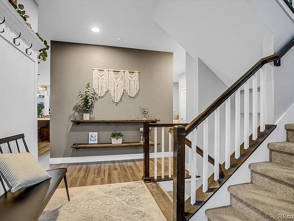 Welcome to your Dream home in a Dreamy community! Located across from a large park and open space, and within the Brighton crossing neighborhood which offers; two fitness centers, a community center with a swimming pool, kids splash pad and several playgrounds. The owners have meticulously maintained this property and have completed so many gorgeous updates. Through the front door you're welcomed by the bright and open floor plan with vaulted ceilings and an abundance of natural light. The spacious kitchen is a chef's dream, wrapped in beautiful white quarts countertops, a huge kitchen island, updated appliances, pull out cabinets and waste bins, and a large pantry! The kitchen overlooks the family room equipped with a custom built in fireplace perfect to cozy up and watch TV. On the main level you also have a custom mud room nook and a large flex space perfect for an office, playroom or den. Upstairs you'll find a generous sized primary bedroom with a huge, attached bathroom featuring two separate closets, double vanity and a nice walk-in shower. The other two bedrooms and full bathroom are located upstairs as well and all closets have custom built-ins and all windows have custom wood ledges. Let's talk about the backyard! This outside oasis has stamped concrete, ample areas for seating, a large garden bed as well as raised garden beds, a strawberry garden and perennial shrubs and flowers watered by a drip system. The unfinished basement is a blank slate and ready for your vision to come alive. This home comes equipped with Solar panels which have been paid off and a three car tandem pull through garage! On the back side of the garage there is an extended concrete pad for extra parking. This home really has it all, don't miss out!