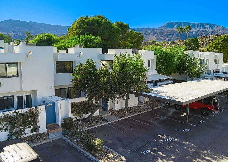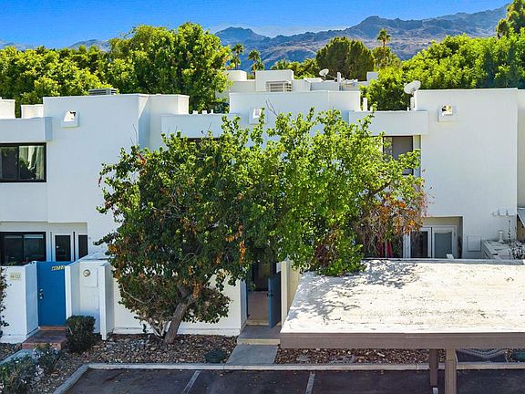 Prime location in South Palm Desert & it's close to the famed El Paseo shopping, dining & art gallery area! This recently updated 2 bedroom, 2 bath, 2-story condo can be your desert dream come true! The main level includes a kitchen with a pantry, a spacious great room & dining area plus a powder room & a roomy storage closet under the stairs. The 2 bedrooms are upstairs & share a full bath. The laundry closet is located in the upstairs bath for convenience. Features include: all newer windows & sliding doors; furnace & air conditioning; water heater; kitchen stove & tile backsplash; fresh paint: large tile flooring in great room & dining area; vinyl plank flooring in kitchen & both baths; carpet on stairs & in hallway; hard wood flooring in both bedroms; window blinds throughout; ceiling fan/light in dining area; hanging light at stairs; fan/lights in both baths; new mirrored wardrobe doors in primary bedroom & fresh coating at concrete patio in courtyard. Enjoy some mountain views from the upstairs bedrooms & the fabulous mountain vistas from the community pool/spa areas, tennis courts & while walking or hiking around the community. There are 2 assigned parking spaces, one is directly in front of the entry gate to the home & the other is a covered parking space across from the property. Relax & enjoy outdoor living from 2 patio areas, one off the great room & the other is a front gated courtyard for privacy. In addition to the pools, spas & tennis courts, there is a meeting room which can be reserved for private events. Don't miss the chance to own a piece of paradise in the desert!