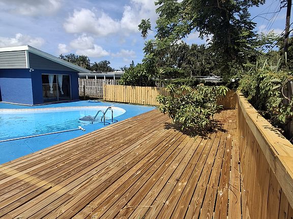 The Pool has a new wood deck which is perfect for lounging. The rear of the house has its own pool bar which is fantastic when using the pool. Tons of space for grilling and an outdoor kitchen.