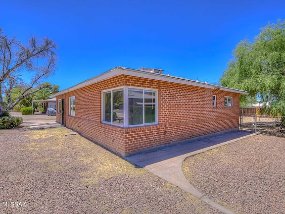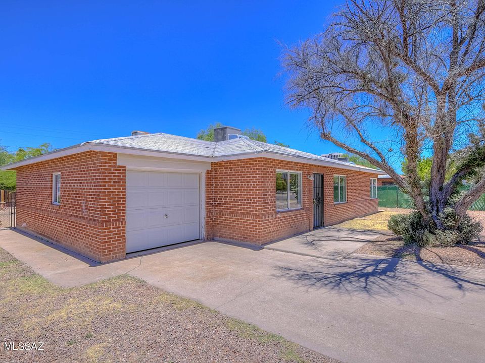 This mid-century three bedroom, two bathroom home is located in popular HOFFMAN neighborhood, just blocks from Hoffman Park, a Little Free Library, Bonillas elementary, Alice Vail and Rincon/UHS. Close to shopping, bus stops, and designated bike path. One car oversized garage with loft storage and attic access. HUGE YARDS for all those hobbies or toys, pets or a future pool. North/South orientation is highly desirable. NO HOA to restrict you, and room for RV. No stairs. Perfect for rental or owner occupant. Come and see this red brick charmer!