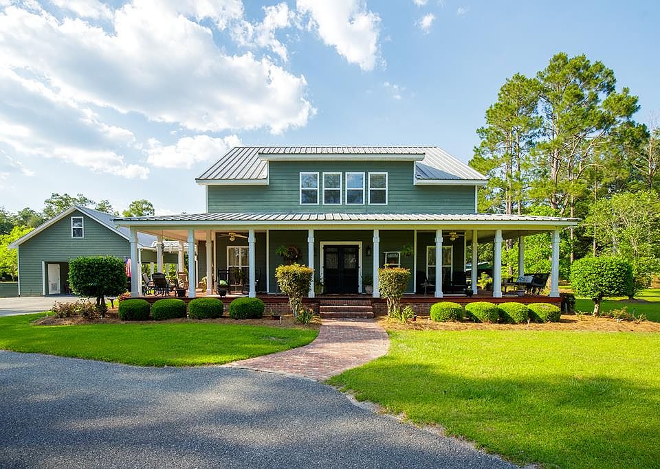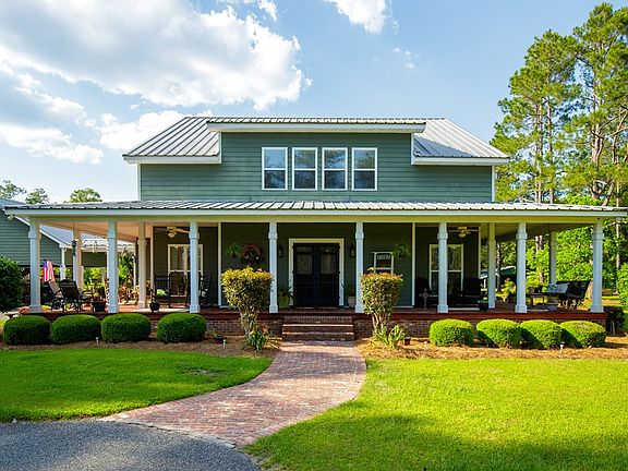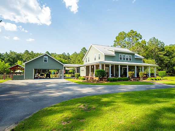 Here's your opportunity to own over 12 acres with a pond, a pool, a barn and a great house, all fenced and gated along the paved road. This home features a nice drive alongside the pond. This Southern style home features a partial wrap around porch and a screened porch on the back and a hot tub. The primary bedroom is conveniently located on the main level, just off the family room. The kitchen has a great window to the side yard and is open to the family room with a eat in bar area. A great surprise is the huge laundry room with multiple storage closets. This laundry is also accessible from the primary suite as well. Upstairs are two bedrooms with a jack and Jill bath. Just off on the bedrooms is an additional room for overflow guests, playroom, office, etc. Outside there is an inground pool, a nice cool deck with covered gazebo area. Above the carport is a 15 x 19 heated/cooled space for additional guests or a game room. A large barn is perfect for a car enthusiast or to store yard equipment. Owner has sold the straw from the pinetrees on occasion. One could easily feel they are on vacation all the time at this lovely home.