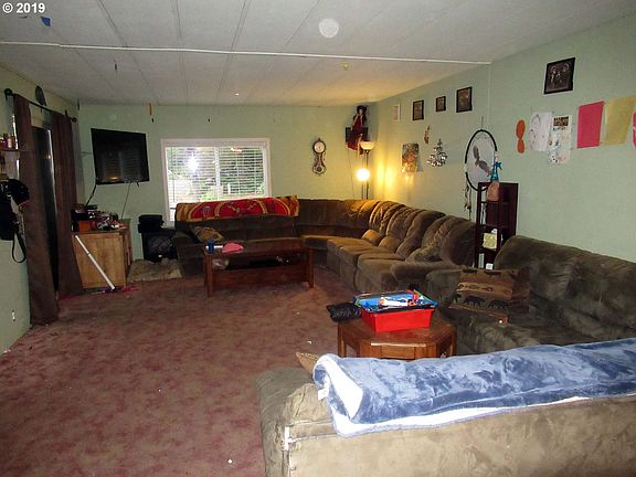 Bring your hammer & creativity to this double wide MF on a large, corner lot. Tons of paved parking with circular driveway & plenty of room for your big kid toys. Home offers oversized living room with slider to front porch. Additional family room for even more living space! Spacious, open kitchen & dining room with built-in hutch and lots of storage. Master suite with double walk-in closets & soak tub. Rear deck + backyard.
