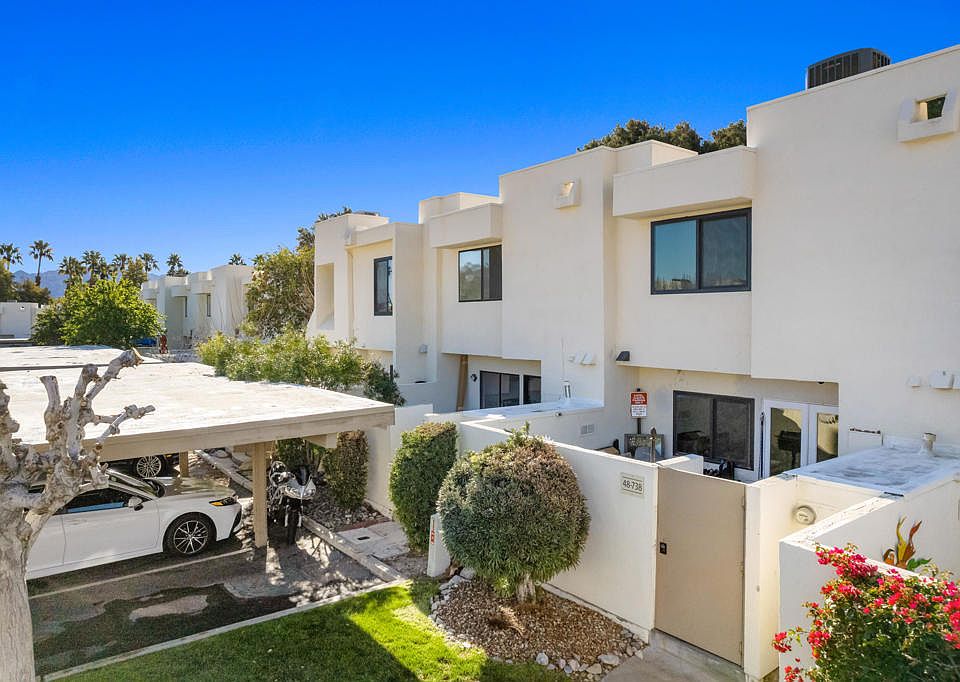 Here is your opportunity to own a beautiful 2 BD/2BA condo, ideally located in South Palm Desert. Nestled in the highly desirable Mountainback development, here you are about a mile up Hwy 74 from upscale shopping, fabulous restaurants as well as the acclaimed art galleries of El Paseo. This home is a fantastic piece of modern architecture, situated on a tranquil interior lot, surrounded by greenery, and overlooking a sparkling pool...which is just steps from your patio. This property has been extensively remodeled, including a new kitchen, posh luxury vinyl flooring, designer paint and plush new carpeting. Your new home has 2 patios, one overlooking the pool, while the other is a secluded courtyard off the kitchen...a perfect mediation space, or quiet spot to enjoy morning coffee. There is so much to offer in Mountainback, including 3 pools, 2 spas, lighted tennis courts, greenspace and clubhouse making this your own private resort, all this plus low HOA dues! Step outside your lush community and you have some of the best hiking trails at your feet. Hurry and schedule your private tour today! All information deemed reliable and buyer to verify.