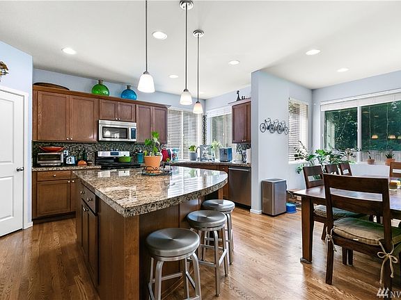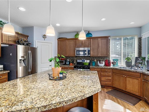Former Murray Franklyn model home in Crown Park of Harbour Pointe offers modern floor plan that lives bigger than expected. 4 Beds + bonus room & office next to bath w/ shower! On cul-de-sac w/ fenced yard backs to park. Great Room to gourmet kitchen w/ granite counters, tile backsplash, hardwoods, dining area, living room w/gas fireplace. New interior paint, wool berber carpet w/foam padding, central A/C, 220 garage outlet, pet washing station & Ziply fiber internet. Walking trail & playground.