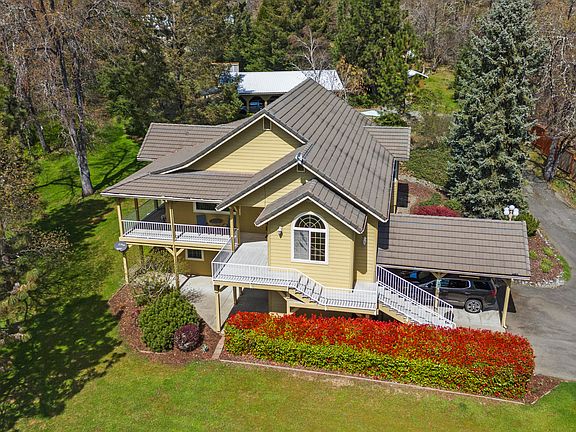 Incredible! VIEWS VIEWS VIEWS! From the moment you drive up the gated, private driveway, you know this home is something special. Custom-built by Brad Benton, it features vaulted ceilings, craftsman oak flooring, and abundant natural light. Brand new stainless-steel oven, stove, microwave, and dishwasher! Thoughtfully designed with a central vacuum system, wraparound deck, and built-in white cabinetry with pull-out shelving. Easy back entry for grocery hauls, leading to laundry and washroom. The primary suite offers wool carpets, a bay window, vaulted ceilings, a private bath, and a walk-in closet. Two additional bedrooms upstairs with wool and oak flooring. The lower level is perfect for guest quarters, a home office, or a game room. Mudroom with basement access for storage and a private entrance. Tons of storage throughout, plus two outbuildings, a greenhouse, and an oversized garage for 4+ vehicles, RVs, and boats. All-organic yard maintenance. A truly special home—don't miss it!