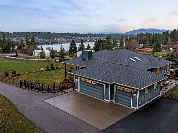 Extraordinary custom home with large 48’x36’ shop on fully fenced acreage with no CCRs overlooking the Spokane River and surrounding mountains only minutes to Coeur d’Alene or Post Falls. The floorplan and flow of this home is incredibly well thought-out with tons of natural light, stunning river and mountain views, a large open concept living area, gourmet kitchen, master suite, 2 additional bedrooms, laundry and 2.5 baths all on the main floor. Enjoy easy main floor living, but with a large walkout basement featuring a kitchenette, 2 additional bedrooms, bathroom, bonus room, separate entrance and patio. Fine finishes and features throughout include soaring ceilings, heated flooring in master suite and 2nd bath, custom cabinetry and built-ins, quartz counters, huge kitchen island, large walk-in pantry, double ovens, wrap around covered decks, 2 covered patios, 3 car insulated garage, and a custom laundry room. With room for big toys and projects this property truly has it all!