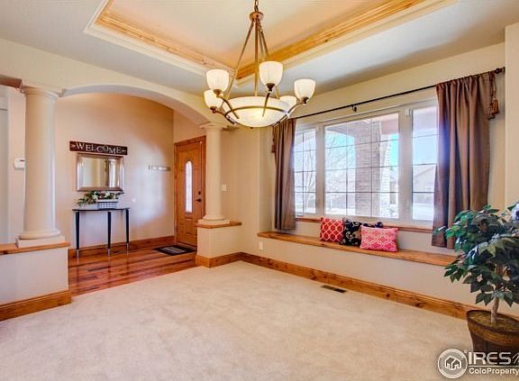 Beautiful Ranch Home in Loveland's popular Alford Meadows, 5 bdrm, 2 bath. This spacious home features a covered entry brick porch and back covered patio (great for entertaining!); beautiful int architecture; lrg kitchen w/ walk-in pantry, granite & custom wood cabinets; gorgeous hickory floors; formal dining room; laundry rm with a tub sink; blt-in surround sound; 5 pc master bath; walk-in master closet; corner gas log fireplace; and 2 car garage. Refridg and pool table stay! Lots of upgrades!