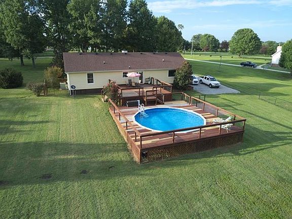 1 level w 5+ Acres! Absolutely a great property in a excellent location Hardwood and Tile floors;;;Large kitchen with so much cabinet space;; Extra large Master Bedroom with tile shower;;;Huge entertaining deck with above ground pool;; Custom built storage building:;