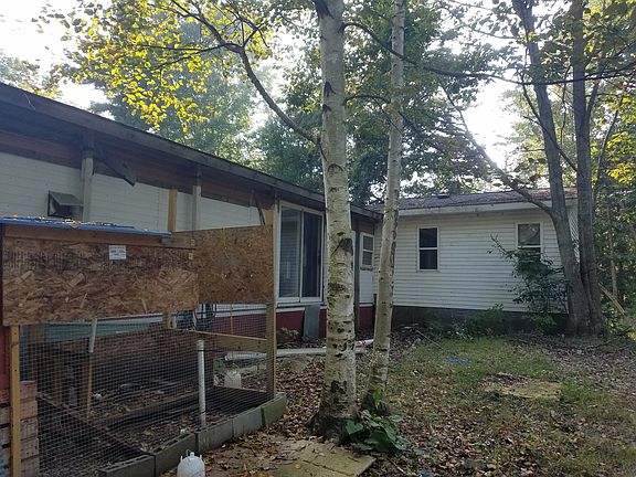 olded trailer with roof over and a 24 by 24 addition on a nicely wooded lot and Cedar lake axcess only 500 yards,away .working septic and nat. gas furnace. needs new well. possible land contract terms.