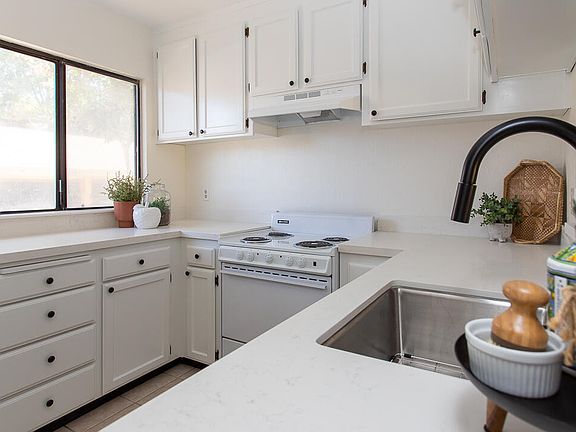 Freshly updated, bright and ready to move into! In the gated Maplewood complex near Fresno State, Save Mart Center and Campus Pointe. This end unit with no adjoining east wall has three bedrooms and two full baths plus one quarter bathroom. All countertops in kitchen and bathrooms are brand new with solid surface countertops, new sinks and fixtures making clean-up a breeze! All appliances are included too! The downstairs kitchen overlooks the dining area and living/great room space and cozy gas fireplace! With the association maintaining the grounds, pool, clubhouse, security plus water, sewer and trash, this is what carefree living is all about!